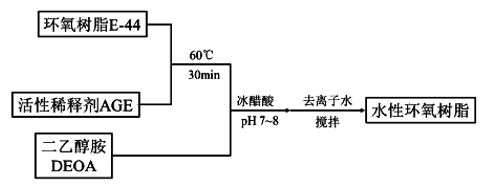 化学改性法又称自乳化法,即将一些亲水性的基团引入到环氧树脂分子链上,使环氧树脂获得自乳化的性质。当改性后环氧树脂加水分散时,疏水性环氧树脂分子链会聚集成微粒,亲水性基团分布在这些微粒的表面,由于电荷间相互作用,在一定的动力学和热力学条件下,就能形成稳定的水性环氧树脂乳液。